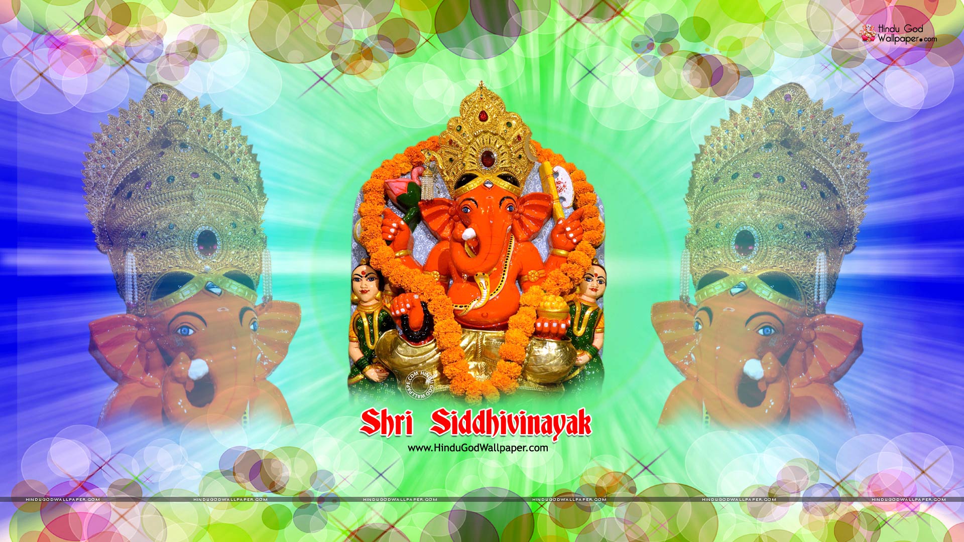 Description: A colorful picture of a ganeshi with a blue background and a green background with circles and dots.
