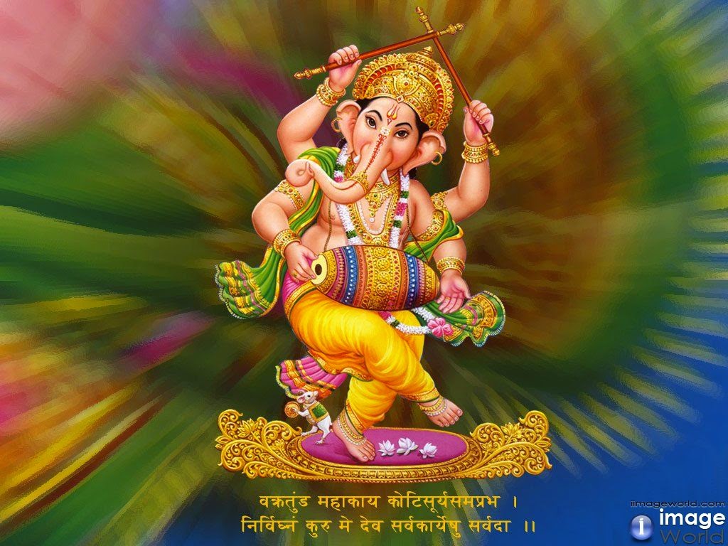 Description: A painting of a ganeshi with a colorful background and a caption in the middle of the image.