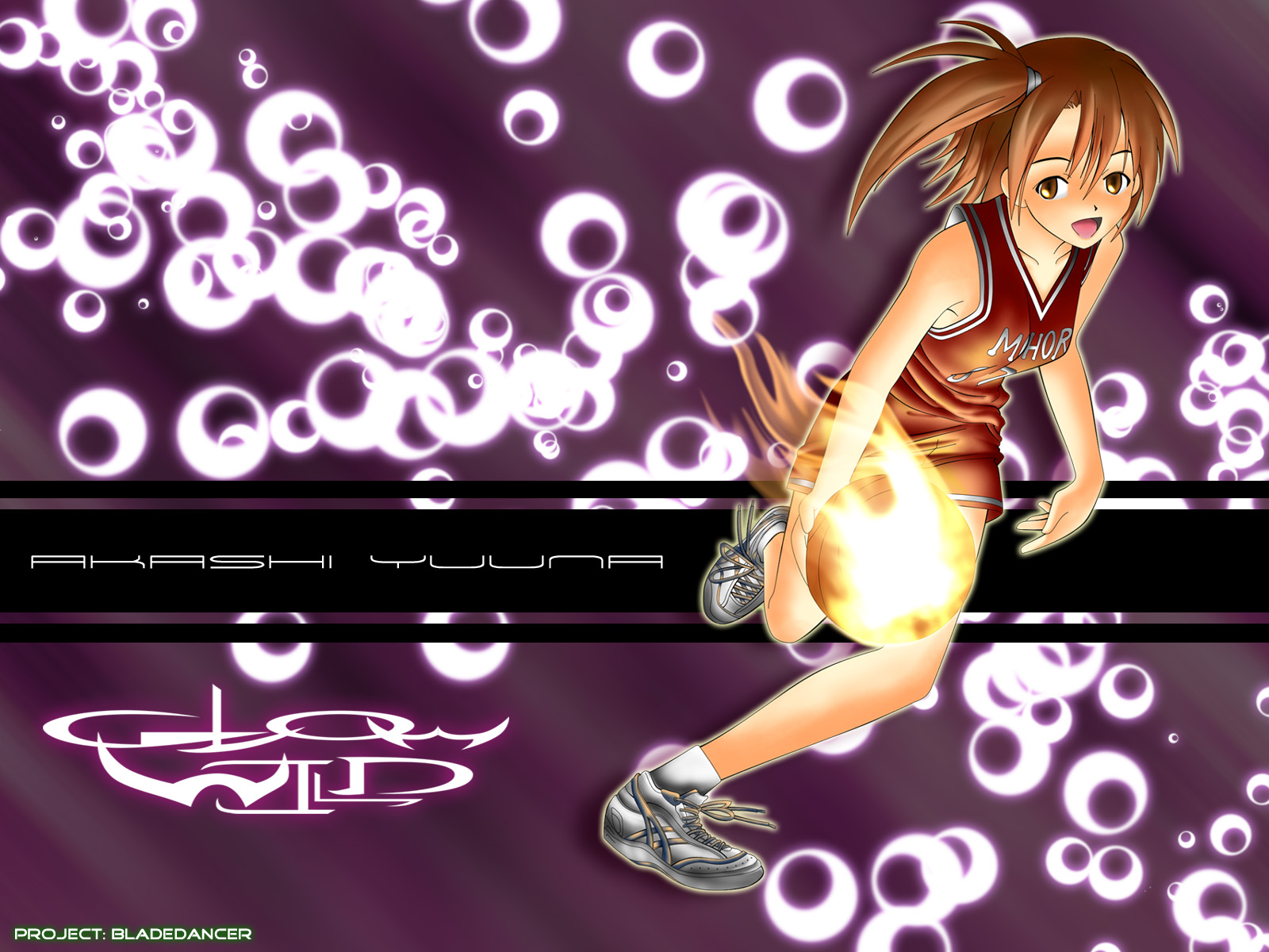 Description: A girl in a basketball uniform is holding a ball and running through bubbles on a purple background with a black and white border.
