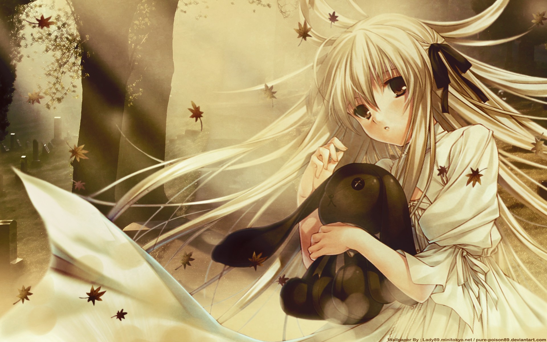 Description: A girl with long hair holding a bird in a forest with stars on it's wings and a white dress.