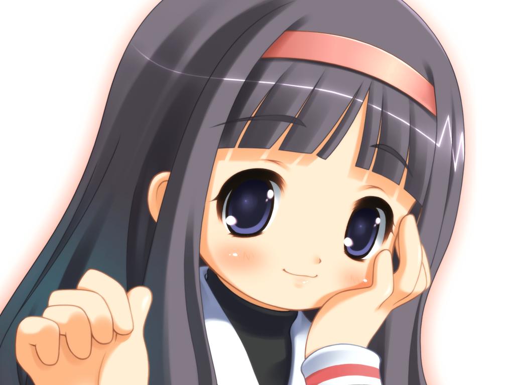 Description: A girl with long black hair and a striped shirt is holding her hand to her face and looking at the camera.