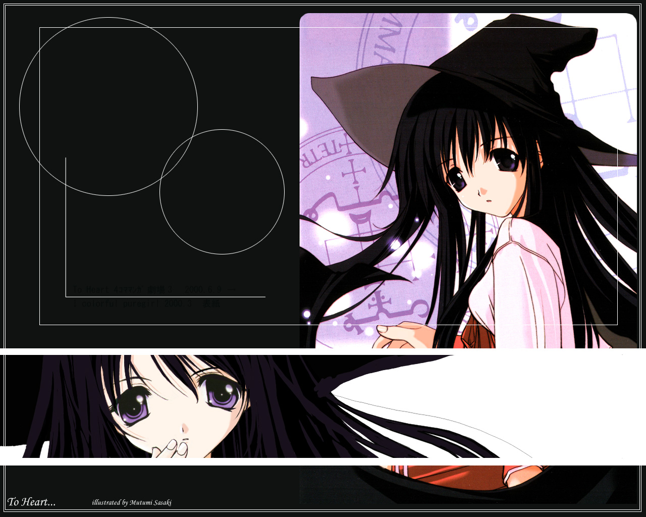 Description: A girl with long black hair wearing a witches hat and a pink shirt and a black hat with long black hair.