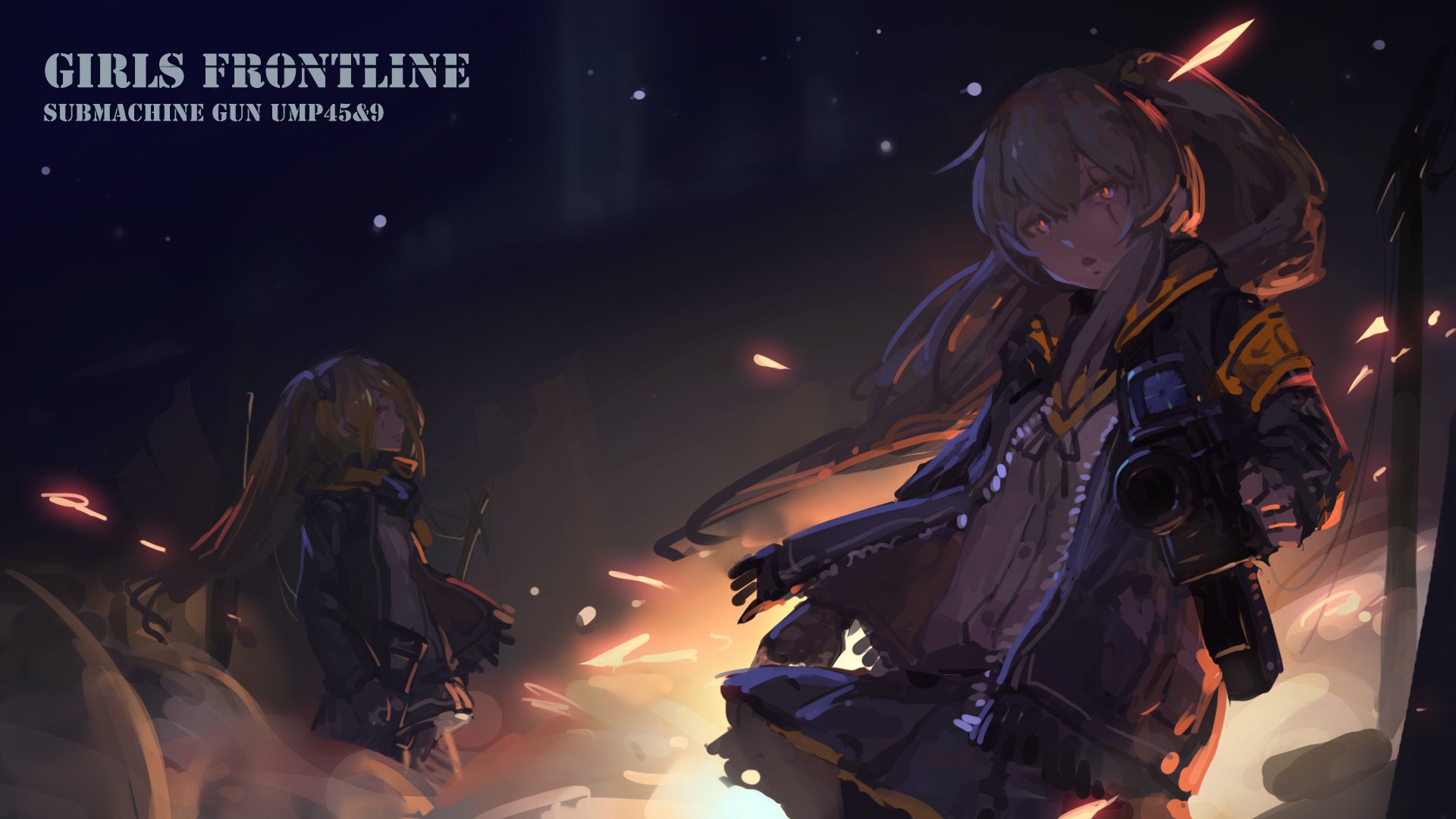 Description: A girl in a black outfit standing next to another girl in a black dress and a red light behind her.