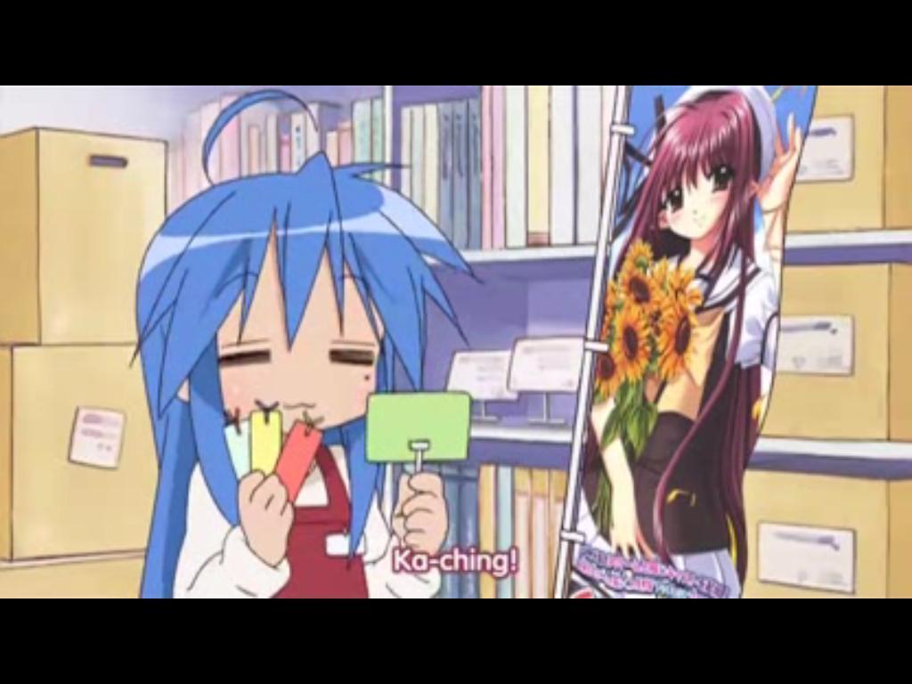 Description: A girl with blue hair holding a flower and a mirror with a picture of a girl in it and a sunflower in her hand.