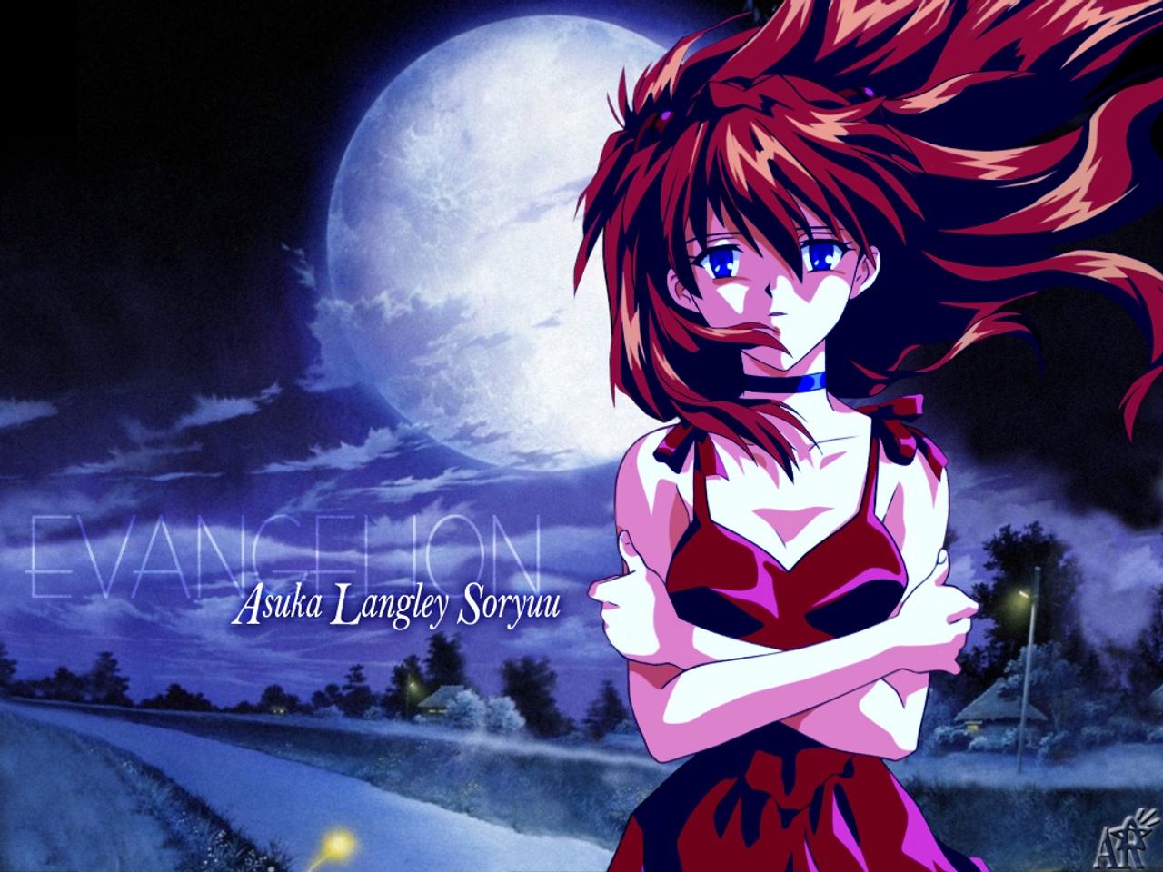 Description: A girl with long hair standing in front of a full moon and a road with a full moon in the background.