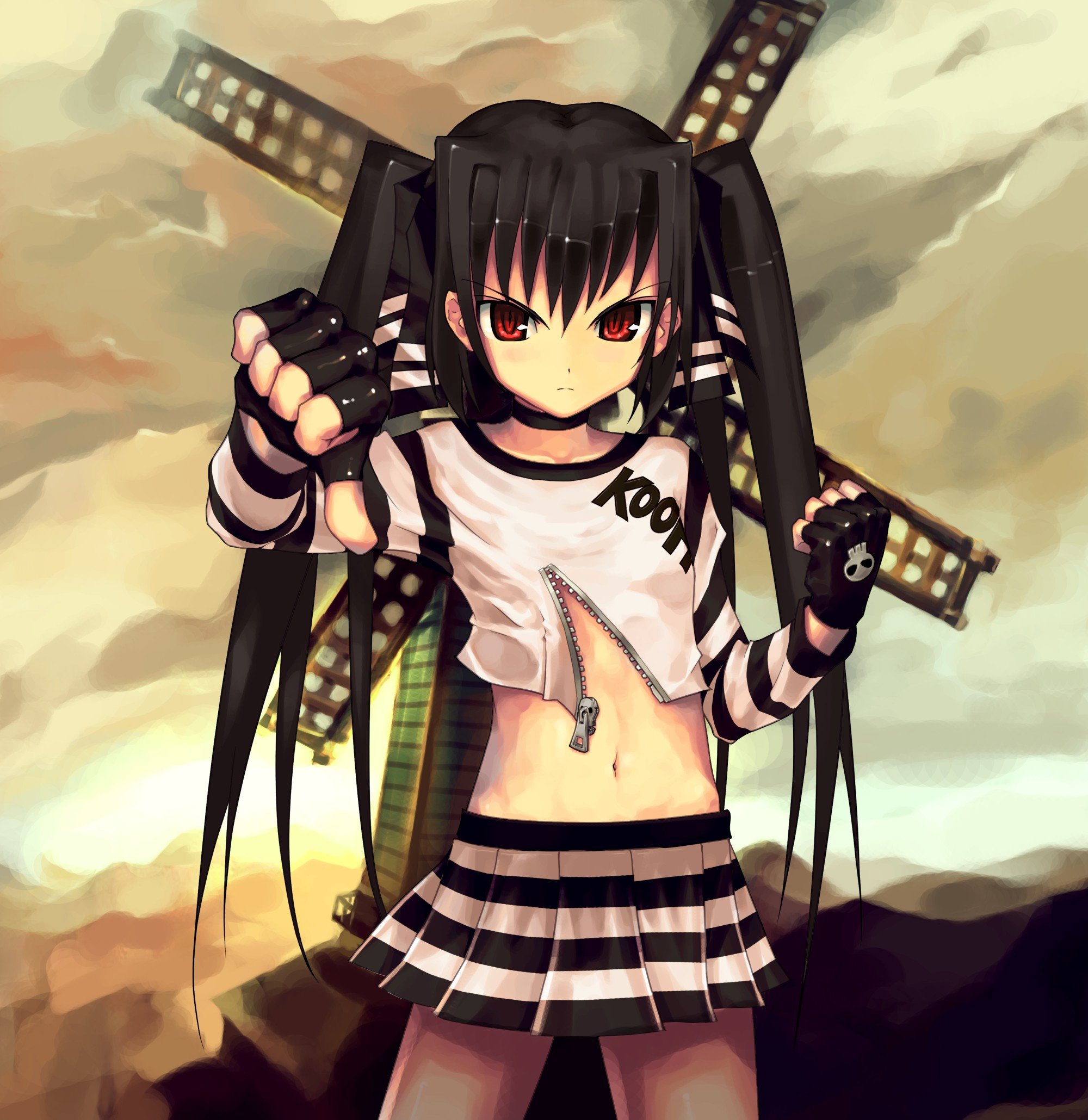 Description: A girl with a gun and a shirt on holding a camera in her hand and a sky background with clouds.