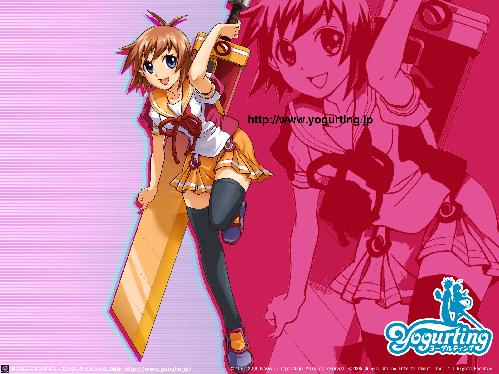 Description: A girl with a gun and a pink background with a pink background and a pink background with a girl holding a gun.