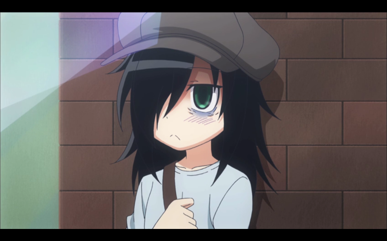 Description: A girl with a hat on her head standing in front of a brick wall with a brick wall behind her.