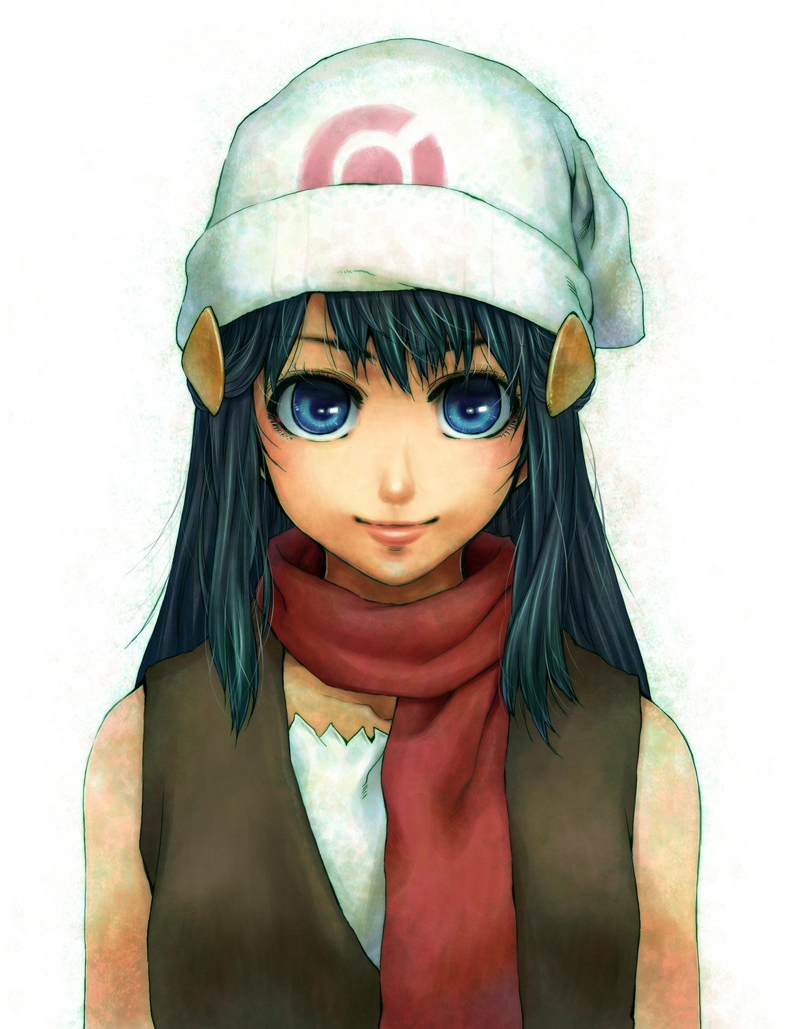 Description: A drawing of a girl with a hat and scarf on her head and a scarf around her neck.