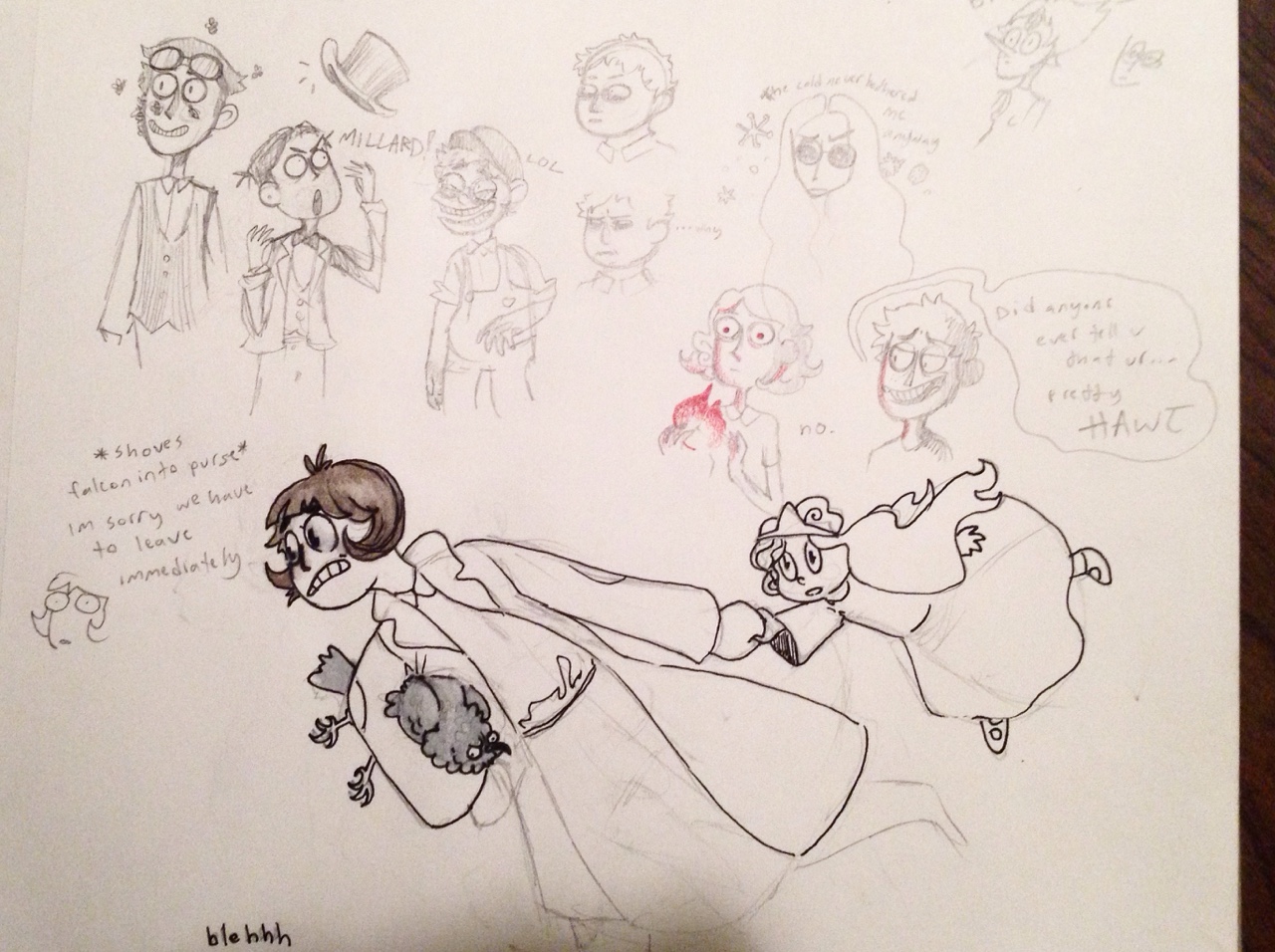 Description: A drawing of a girl holding a stuffed animal in her arms and a bunch of other drawings behind her.