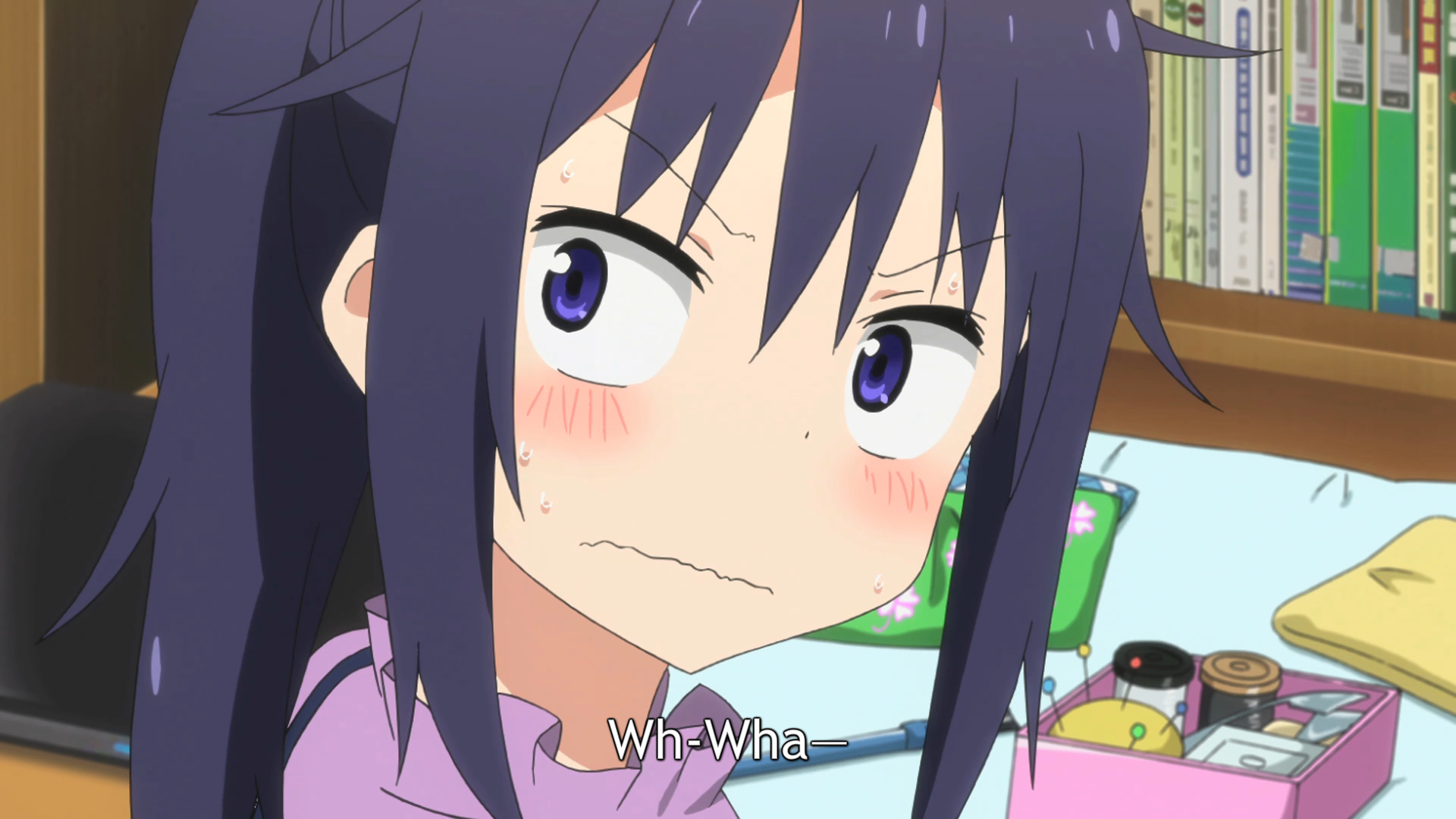 Description: A girl with long hair and blue eyes sitting in front of a book shelf with a box of books.