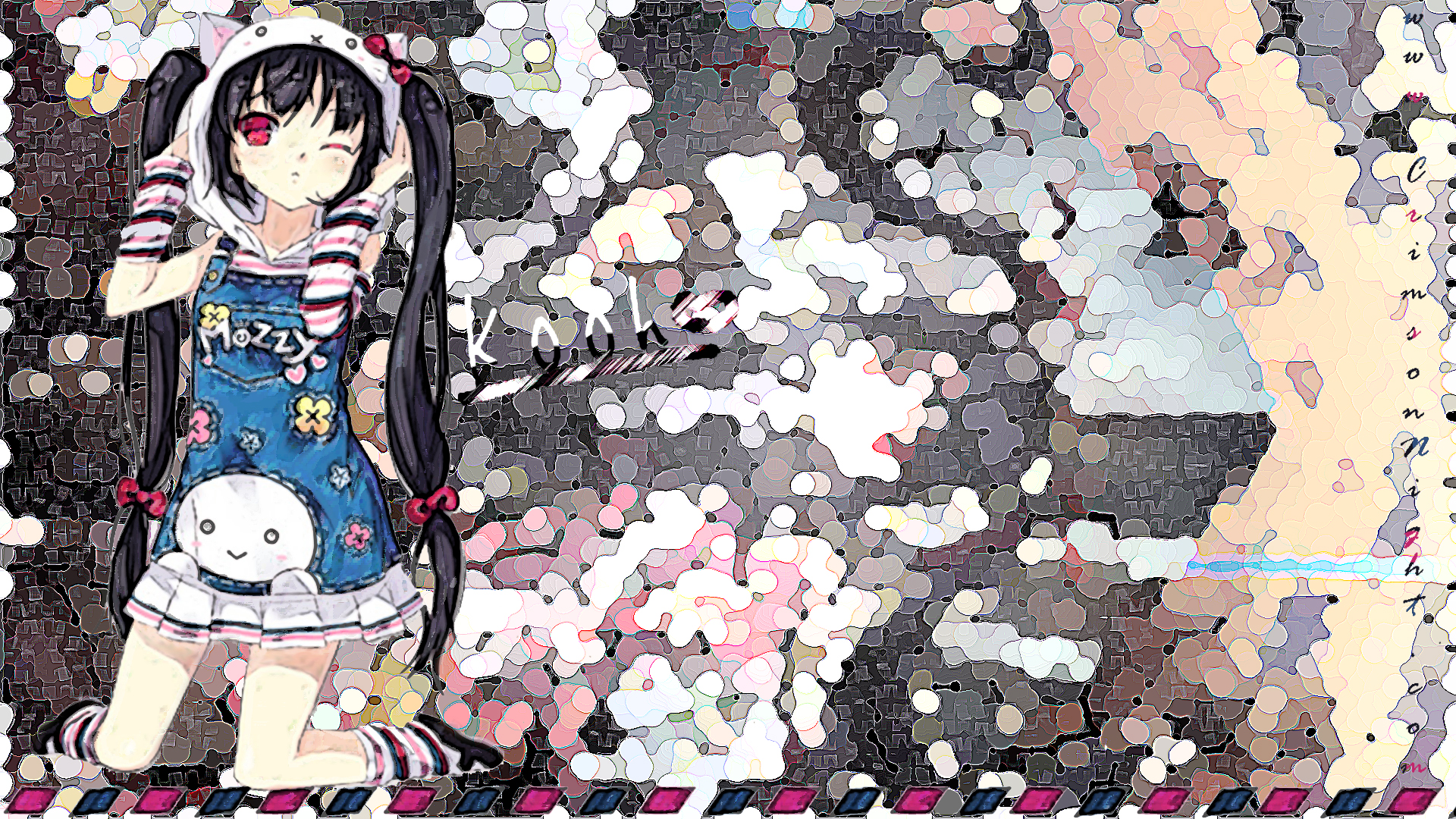 Description: A girl with long hair and a cat in a dress is holding a bird in her hand and a cat is on her shoulder.