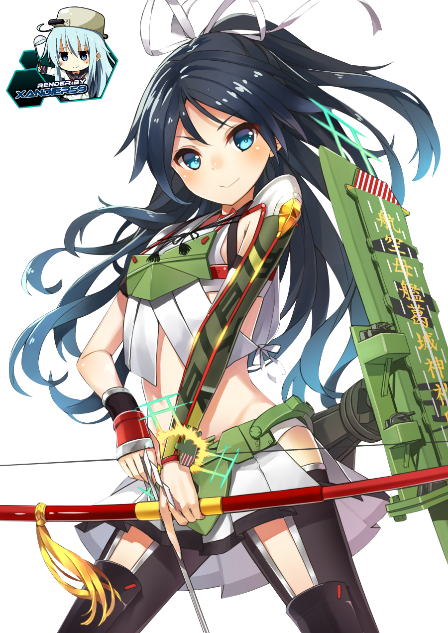 Description: A girl with long hair holding a green machine gun and a sword in her hand.
