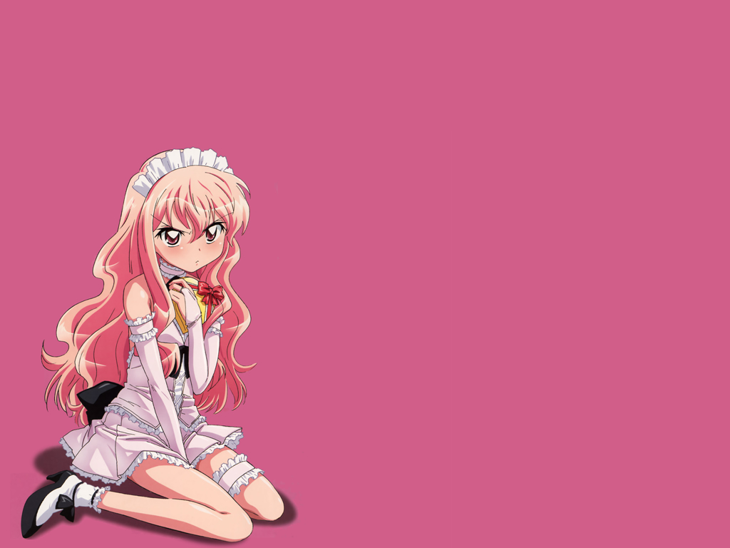 Description: A girl with long hair sitting on the ground with a knife in her hand and a pink background with a pink background.