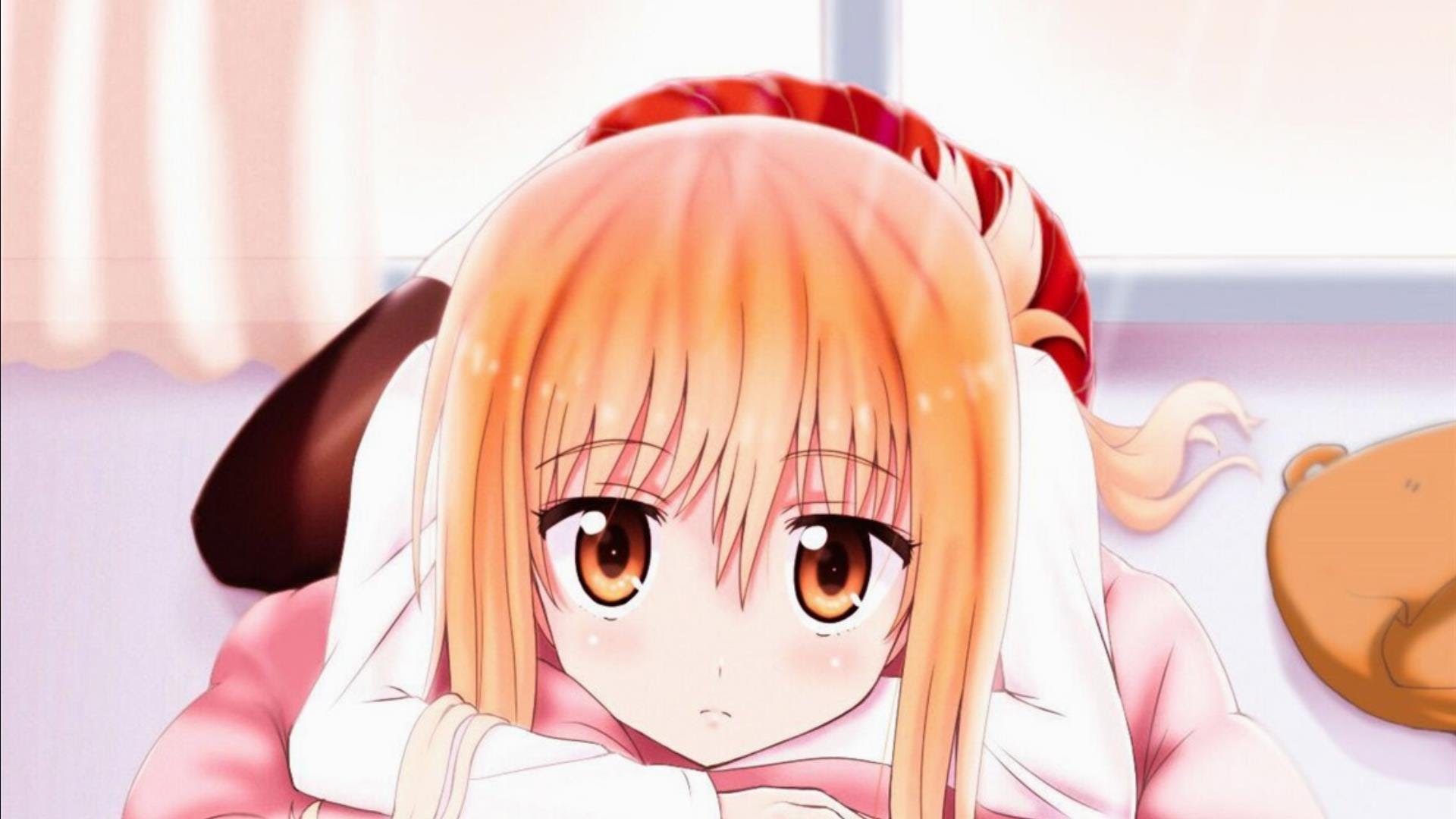 Description: A girl with long hair and a pink dress is sitting in a room with a teddy bear on the floor.
