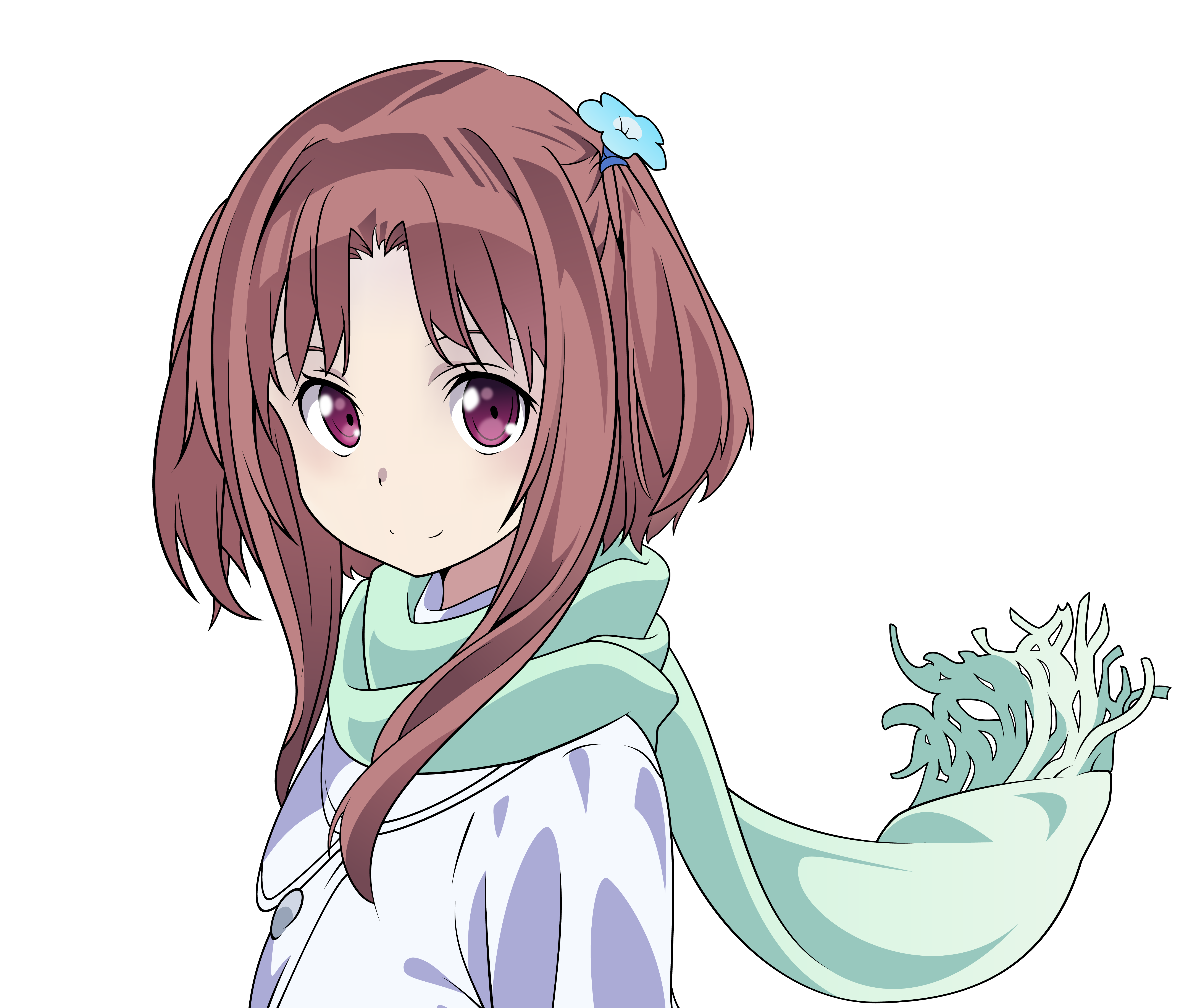 Description: A girl with long hair and a scarf around her neck holding a frog in her hand.