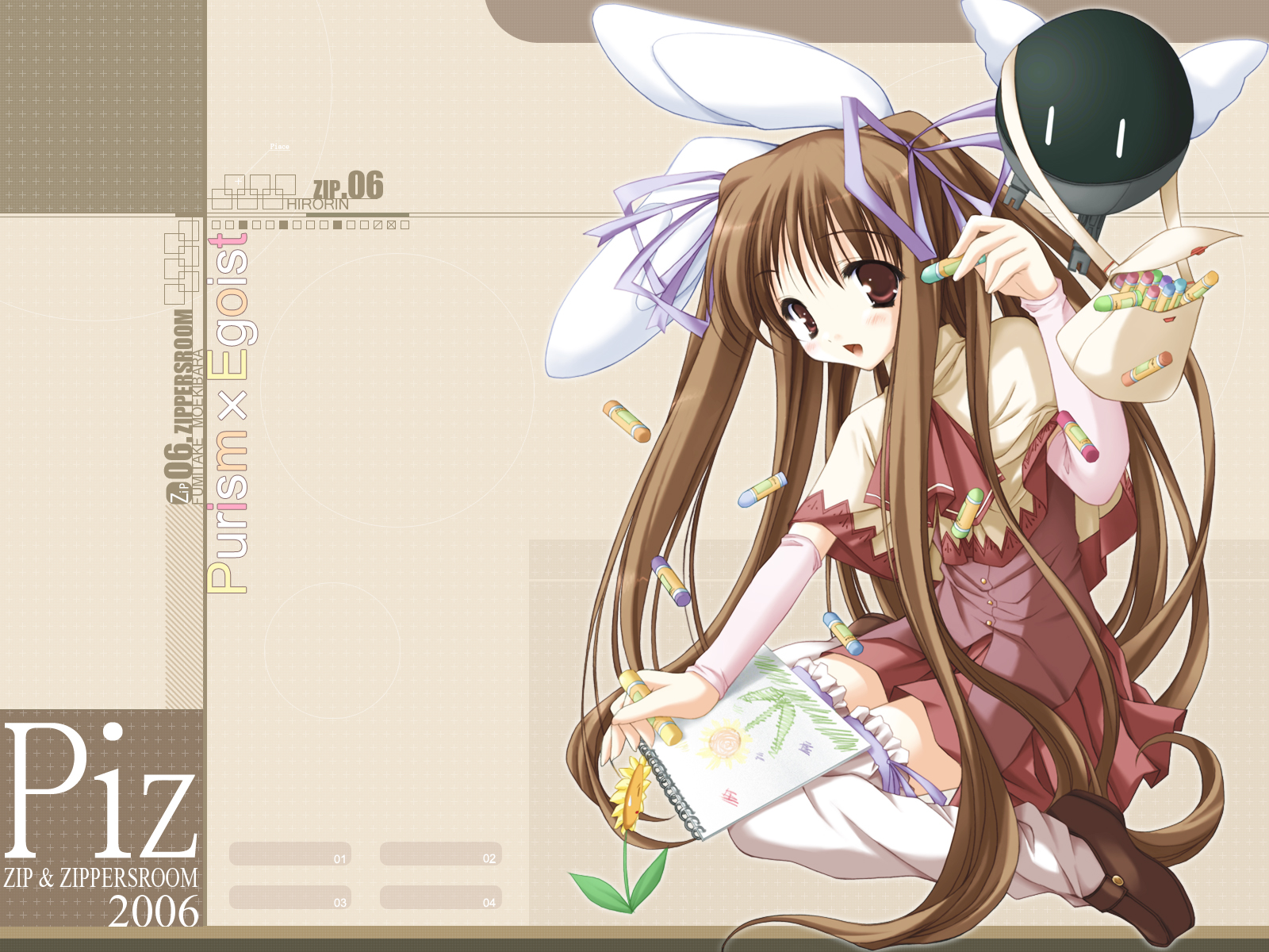 Description: A girl with long hair holding a book and a balloon in her hand.