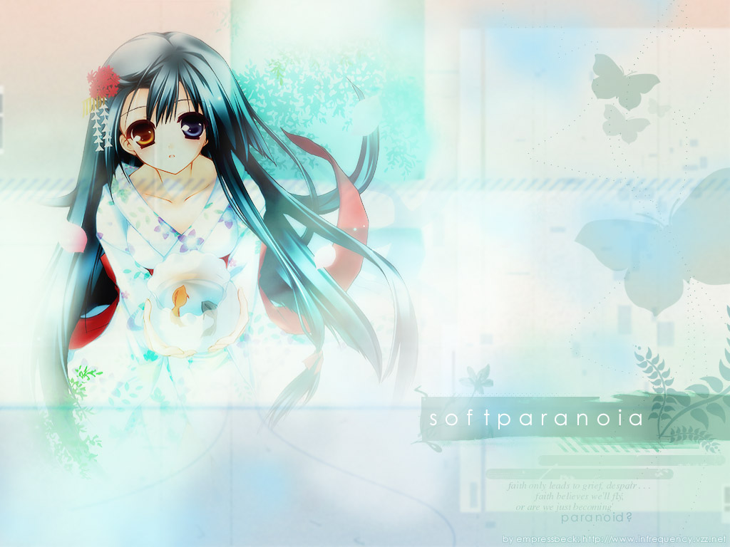 Description: A girl with long hair and a white dress holding a flower in her hand and a butterfly in her hand.