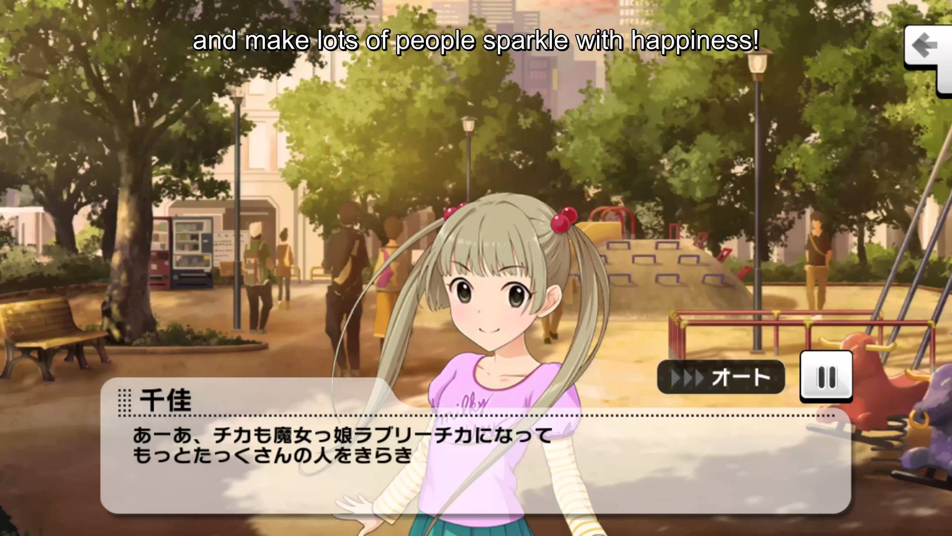 Description: A girl is standing in a park with a kite in her hand and a message in the middle of the screen.