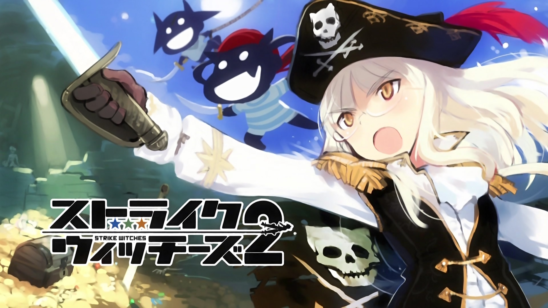Description: A girl in a pirate costume holding a sword and a skull on the ground with other characters in the background.