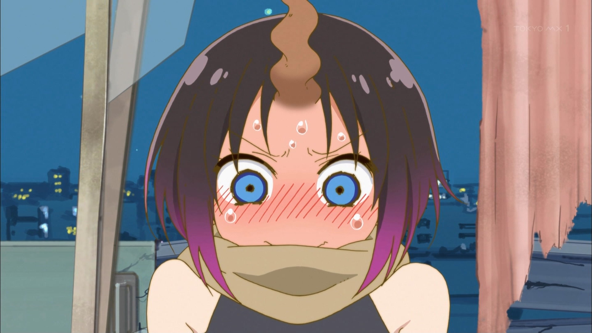 Description: A girl with purple hair and blue eyes staring at the camera with a creepy expression on her face and a creepy expression on her face.