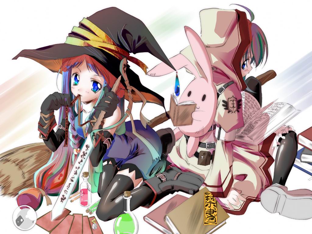 Description: A cartoon of a girl with a rabbit costume and a girl with a rabbit costume on her head and a rabbit in her hand.