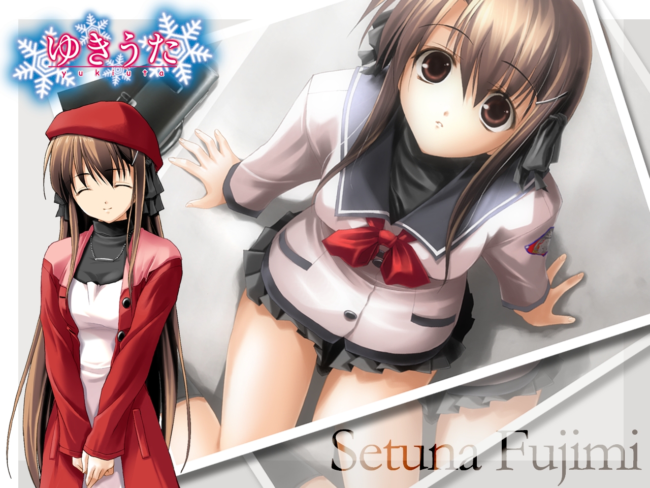 Description: A girl in a red coat and a girl in a white shirt and red hat are standing next to each other.