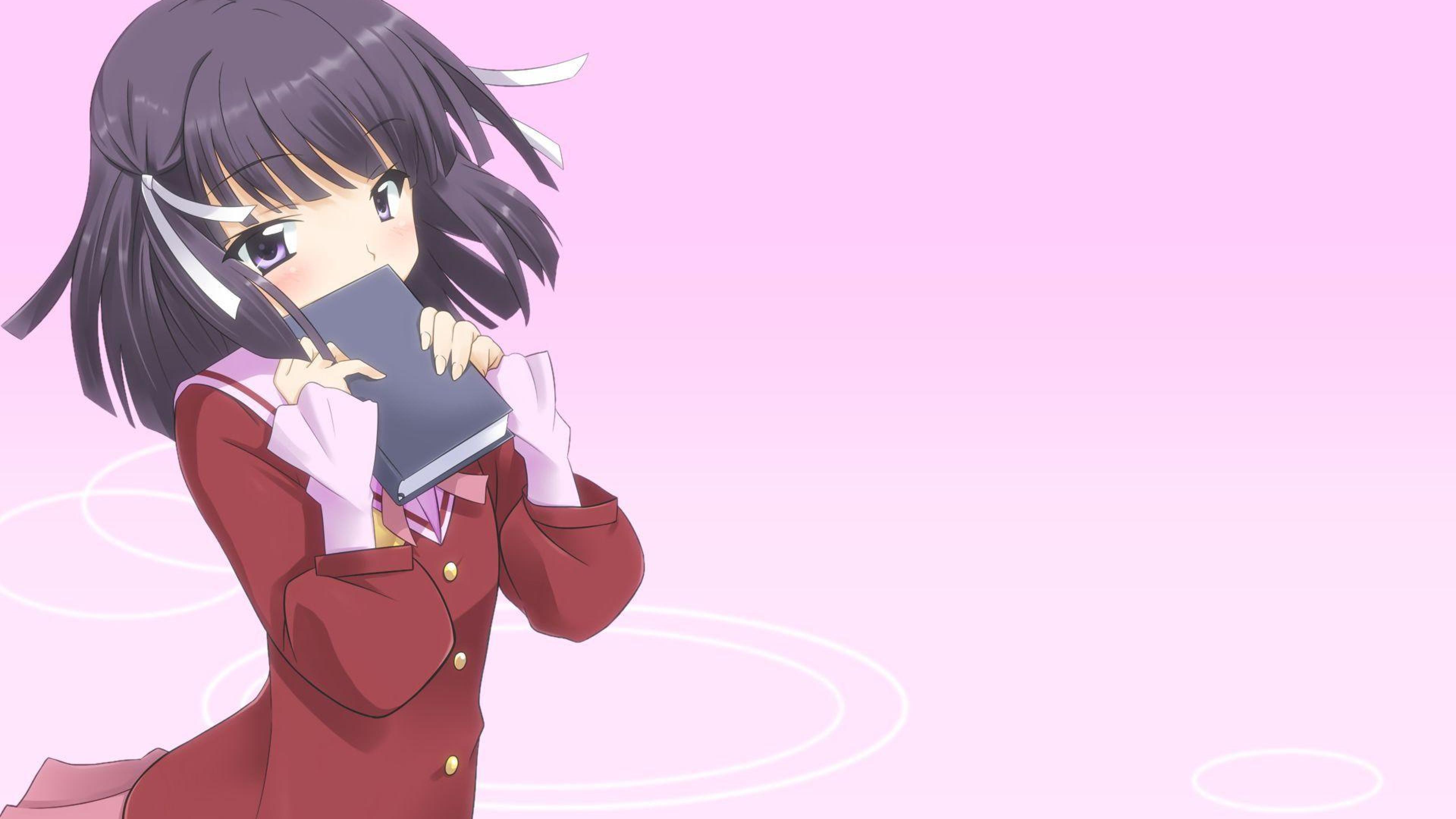 Description: A girl in a red dress holding a tablet computer and a knife in her hand.