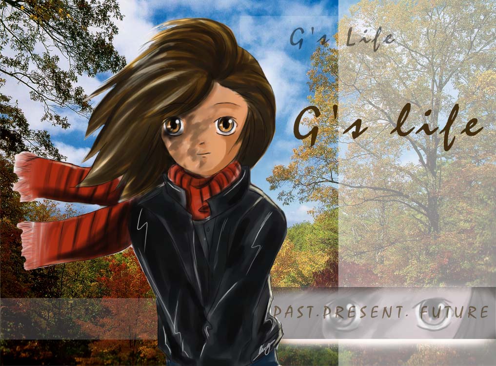 Description: A girl with a scarf is standing in the woods with her hair blowing in the wind and the words golive above her.