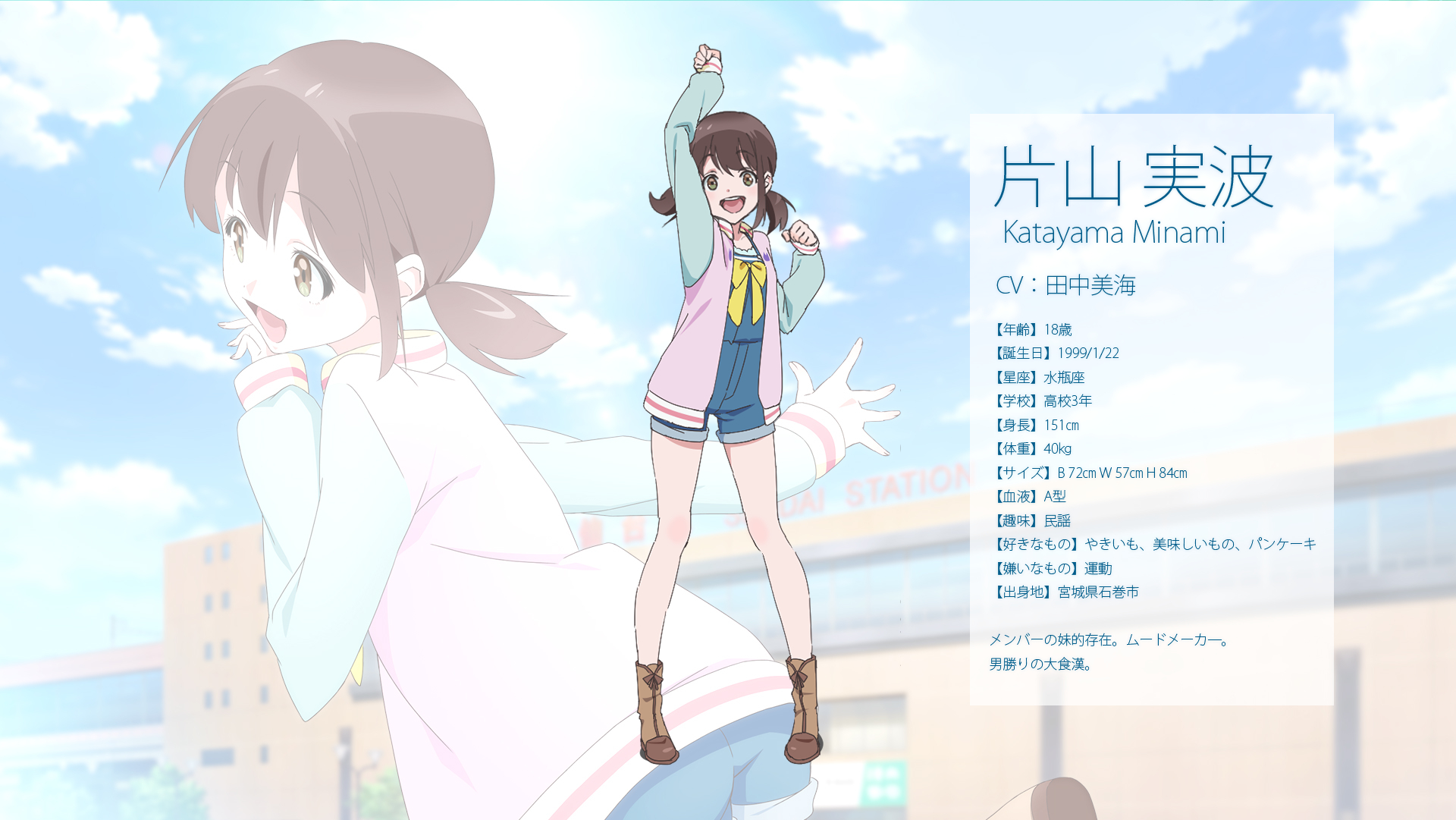 Description: A girl in a short skirt and boots is standing in front of a building with a sky background and a sign that says kagema matshi.