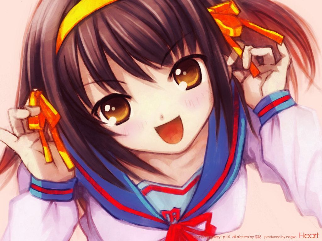 Description: A girl with a yellow ribbon around her head and a yellow ribbon around her head.