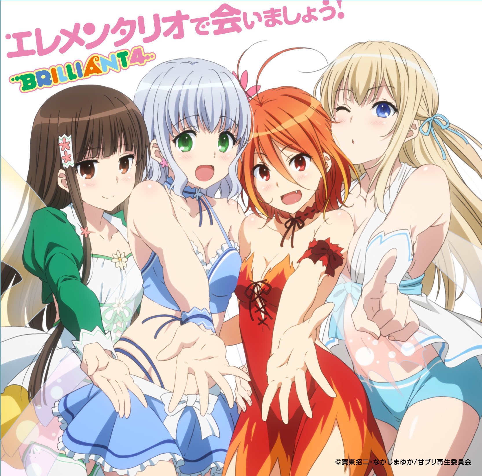 Description: A group of girls in a bed with the caption'bleacher'in english and japanese.