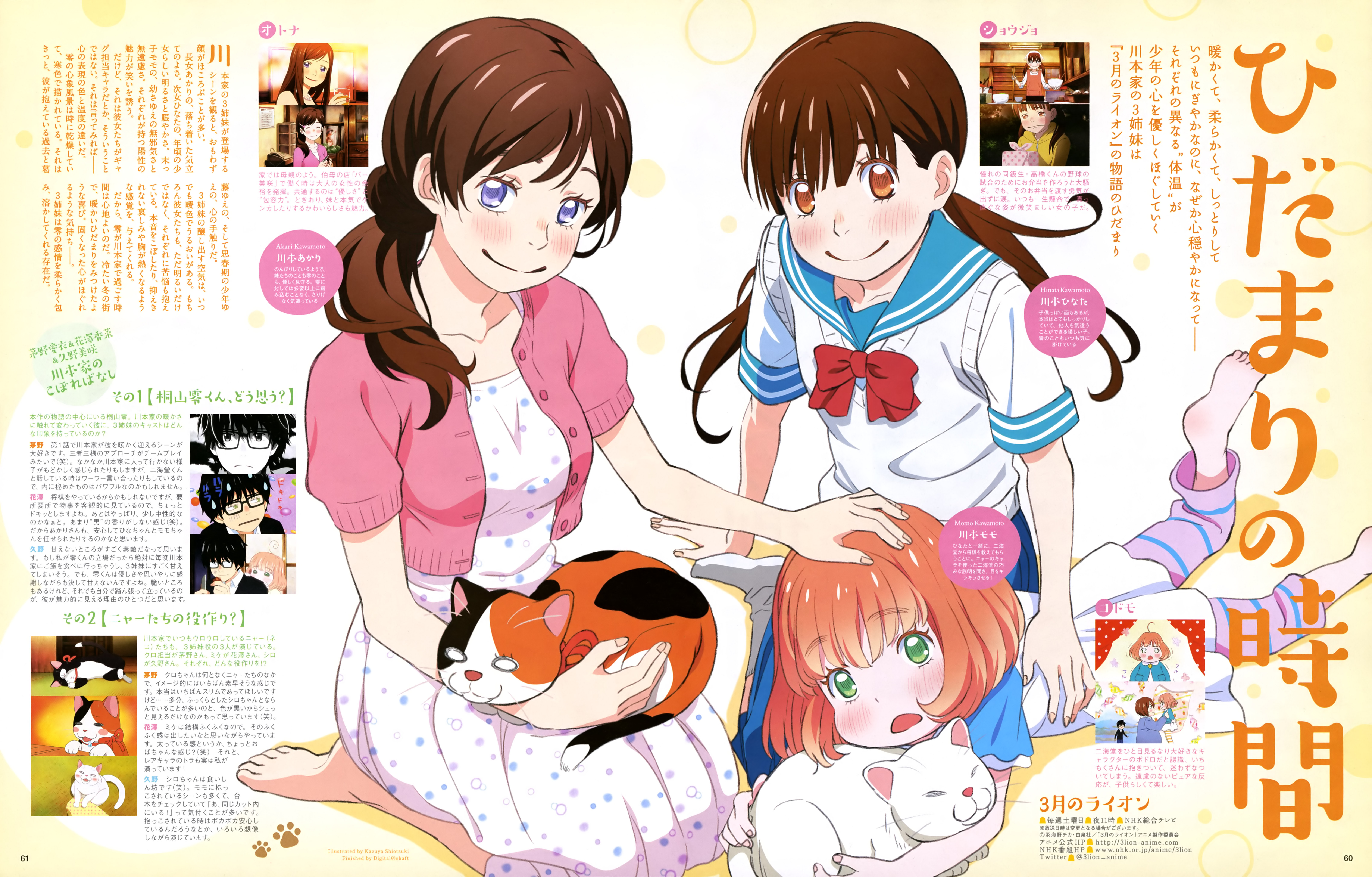 Description: A couple of girls sitting next to each other on a floor with a cat on their lap and a cat on the ground.