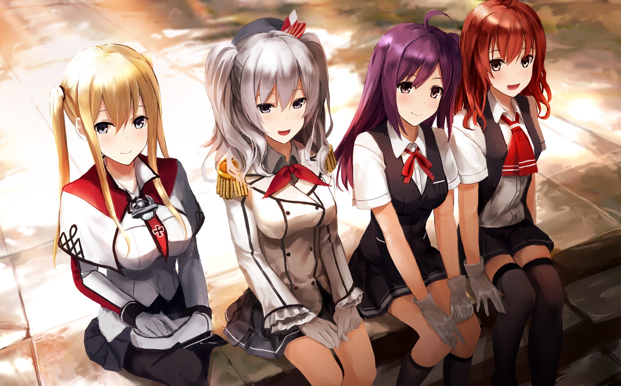Description: A group of girls sitting on a ledge in front of a building with their hands on their hipss.