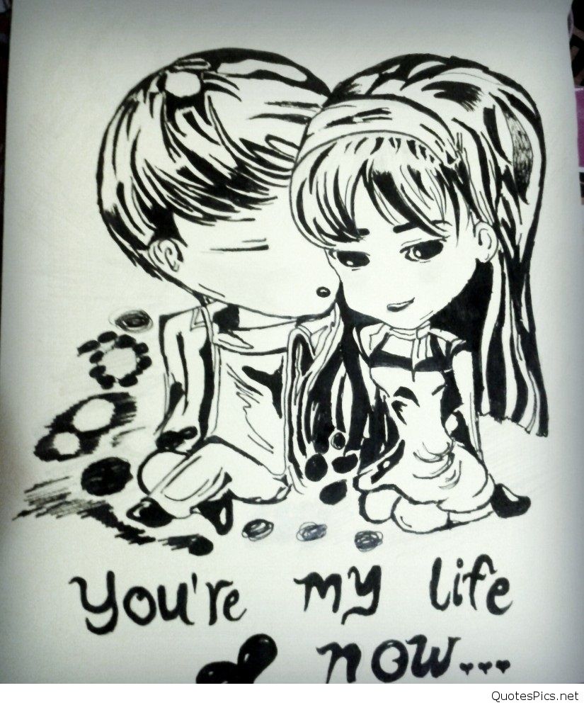 Description: A drawing of two girls sitting next to each other with the words you're my life now written on it.