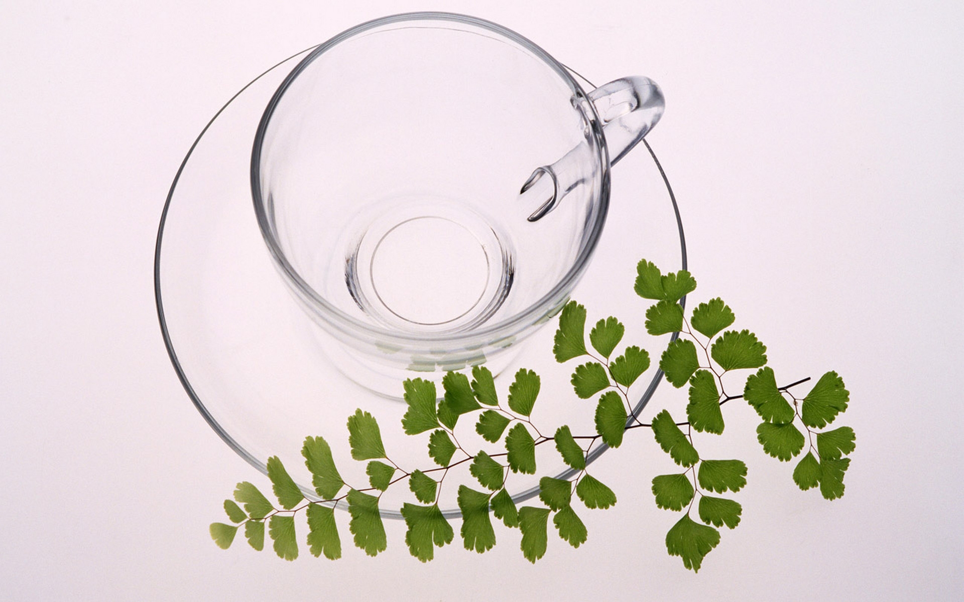 Description: A glass bowl with a plant inside of it on a table next to a glass plate with a plant inside of it.