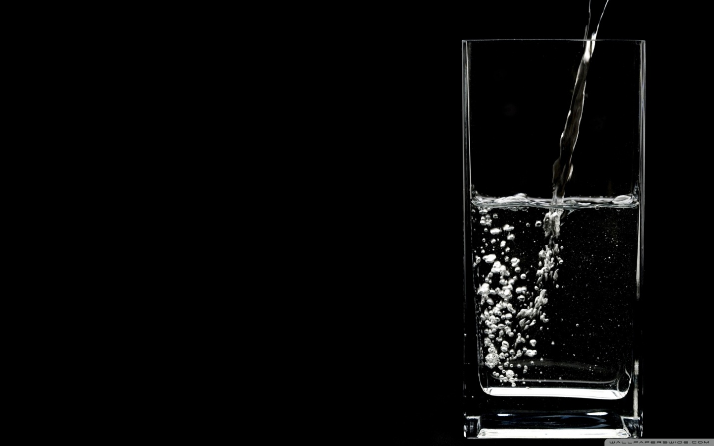 Description: A glass of water is being poured into it with a black background and a black background behind it is a black background with a white border.