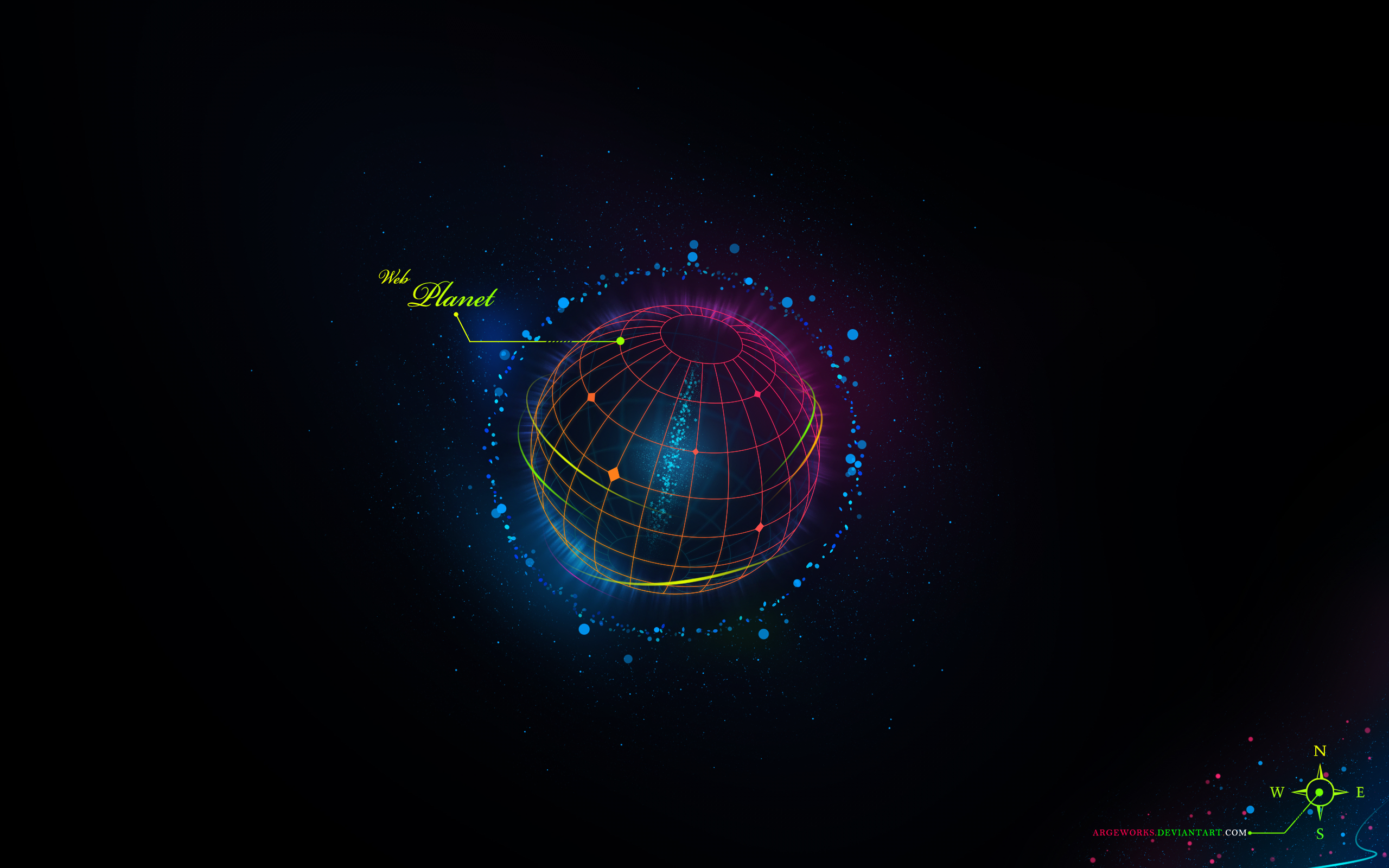 Description: A colorful graphic of a globe with a line of stars in the middle of it and a green arrow pointing to the center.