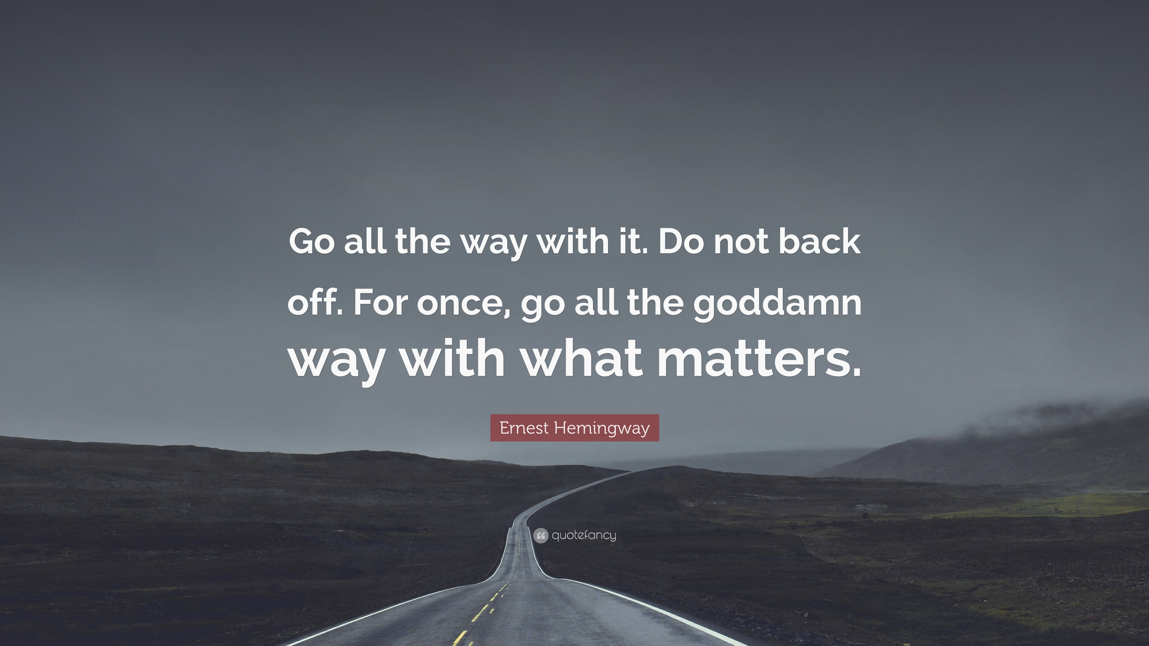 Description: A road with a quote on it that says go all the way with it do not back off for once.