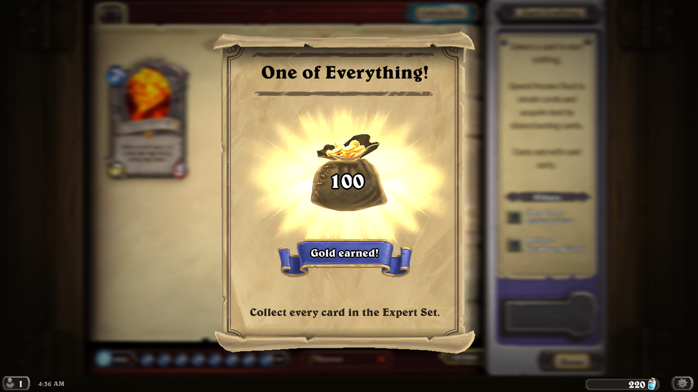 Description: A card with a picture of a gold coin on it and a sign that says one of everything gold.