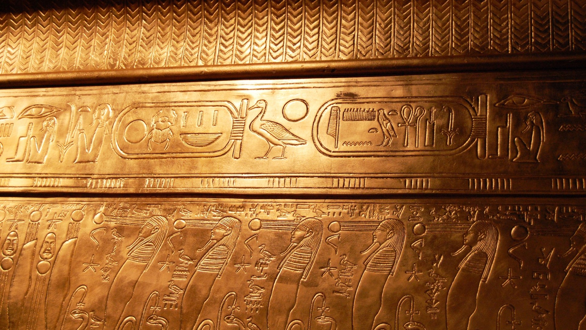 Description: A gold wall with egyptian writing on it and a gold background with a gold border around it and a gold background with a gold border.