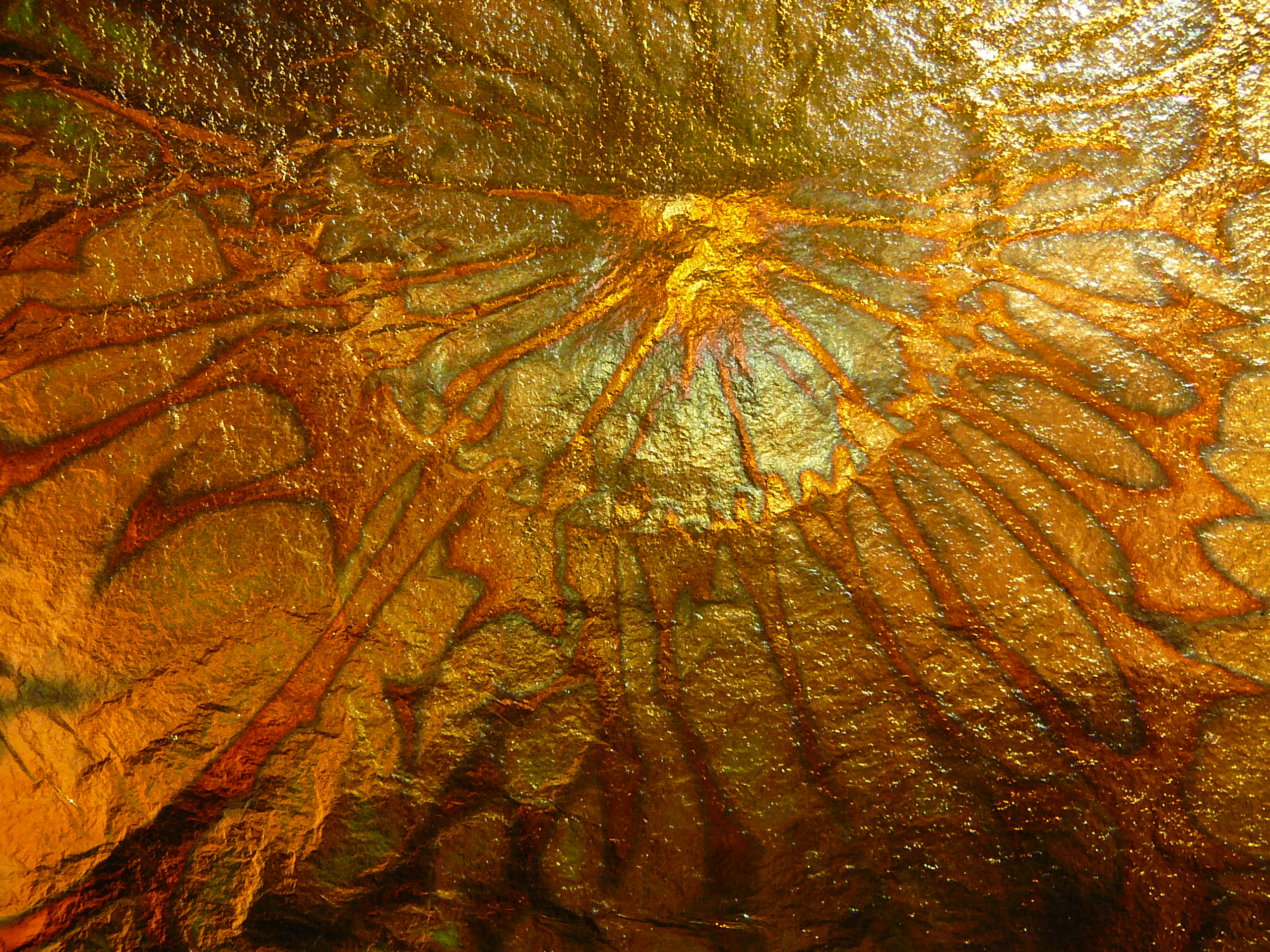 Description: A close up of a gold colored wall with a tree pattern on it's surface and a yellow background.