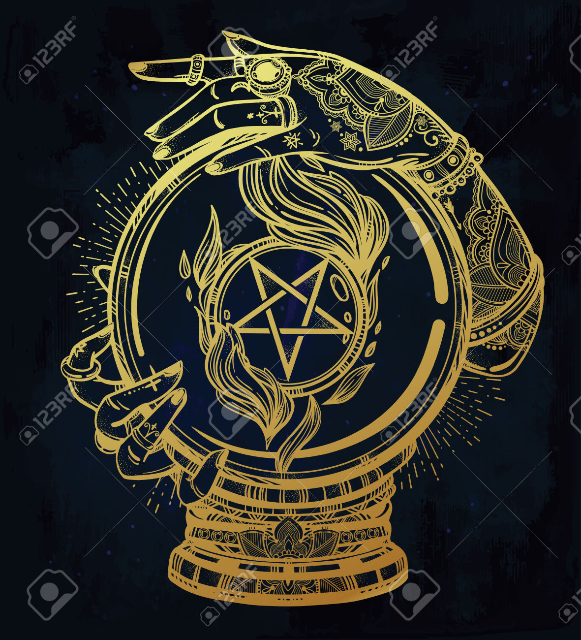 Description: A golden pentagramil with a pentagramil on it and a pentagramil on the top of it.