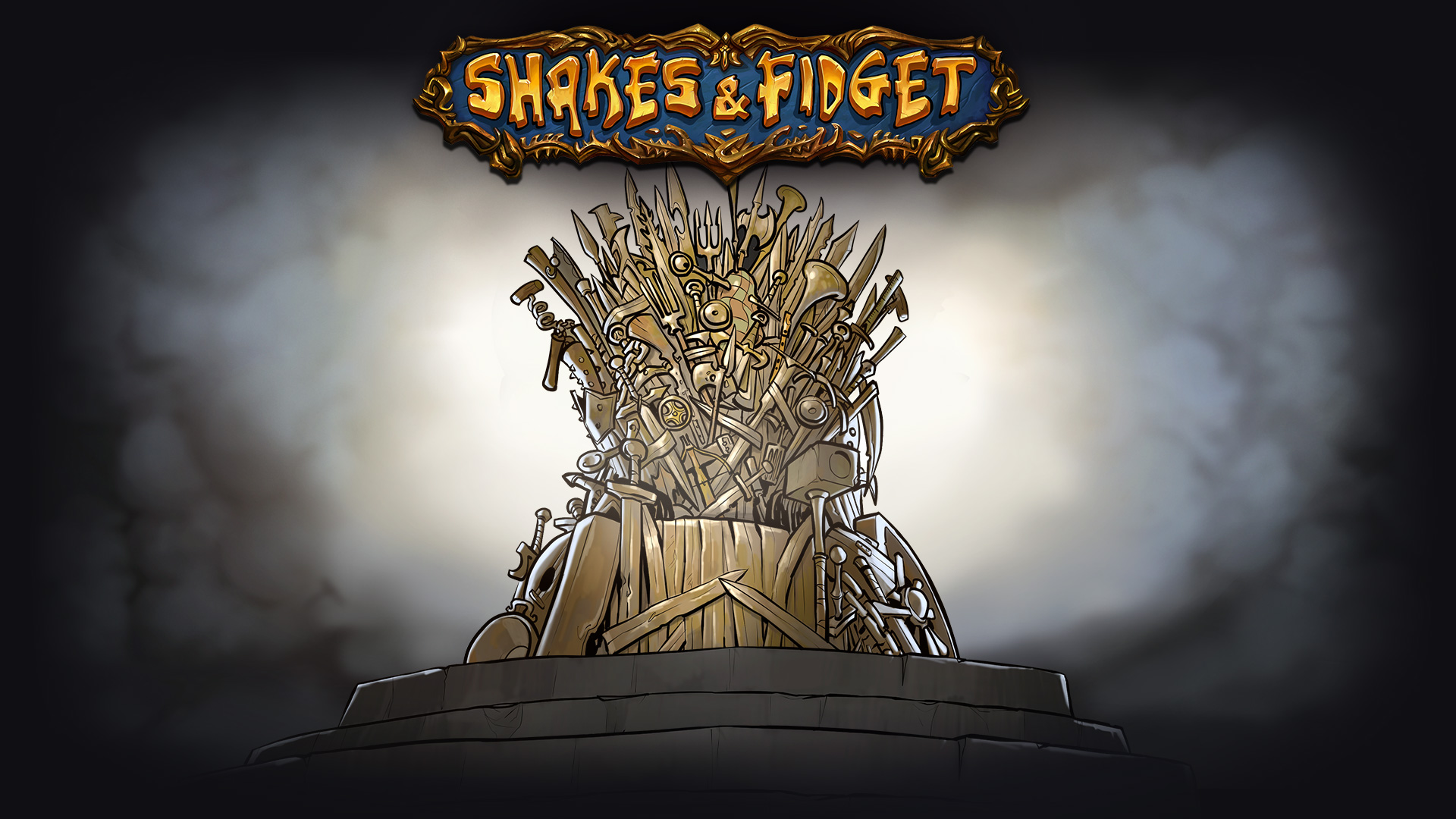 Description: A cartoon of a golden throne with swords on it's back and the words.