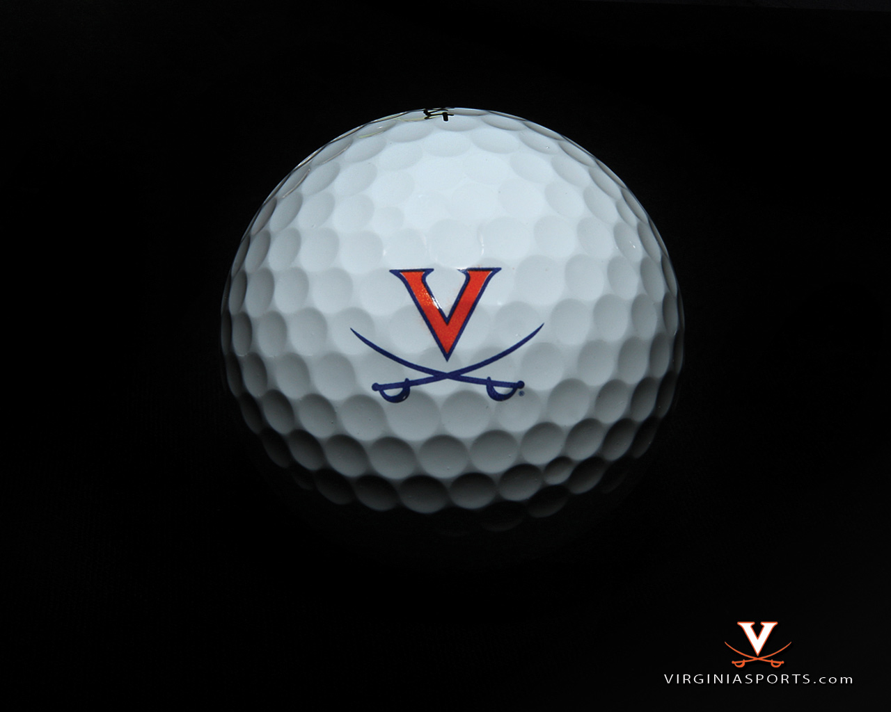 Description: A golf ball with a v on it and a sticker on the side of it that says v.