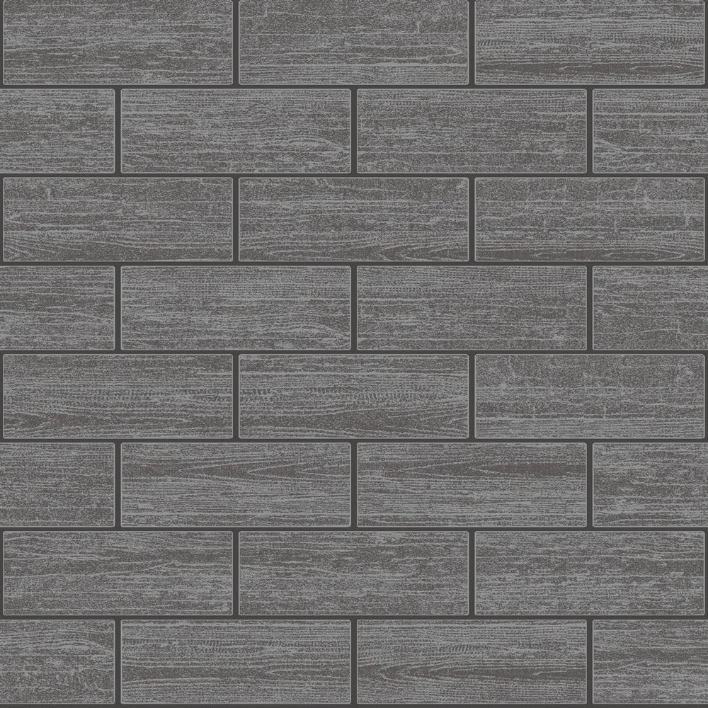 Description: A gray brick wallpaper with a grey flooring pattern on it's side and a black floor.