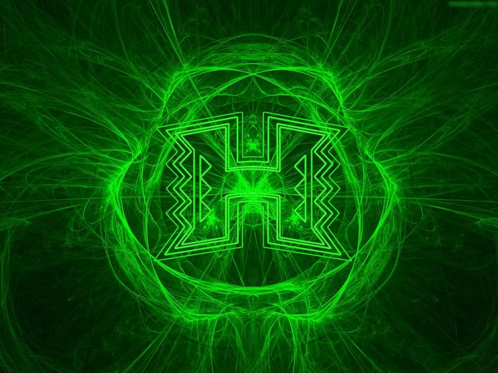 Description: A green abstract background with a letter h in the middle of it and a circular design in the middle.