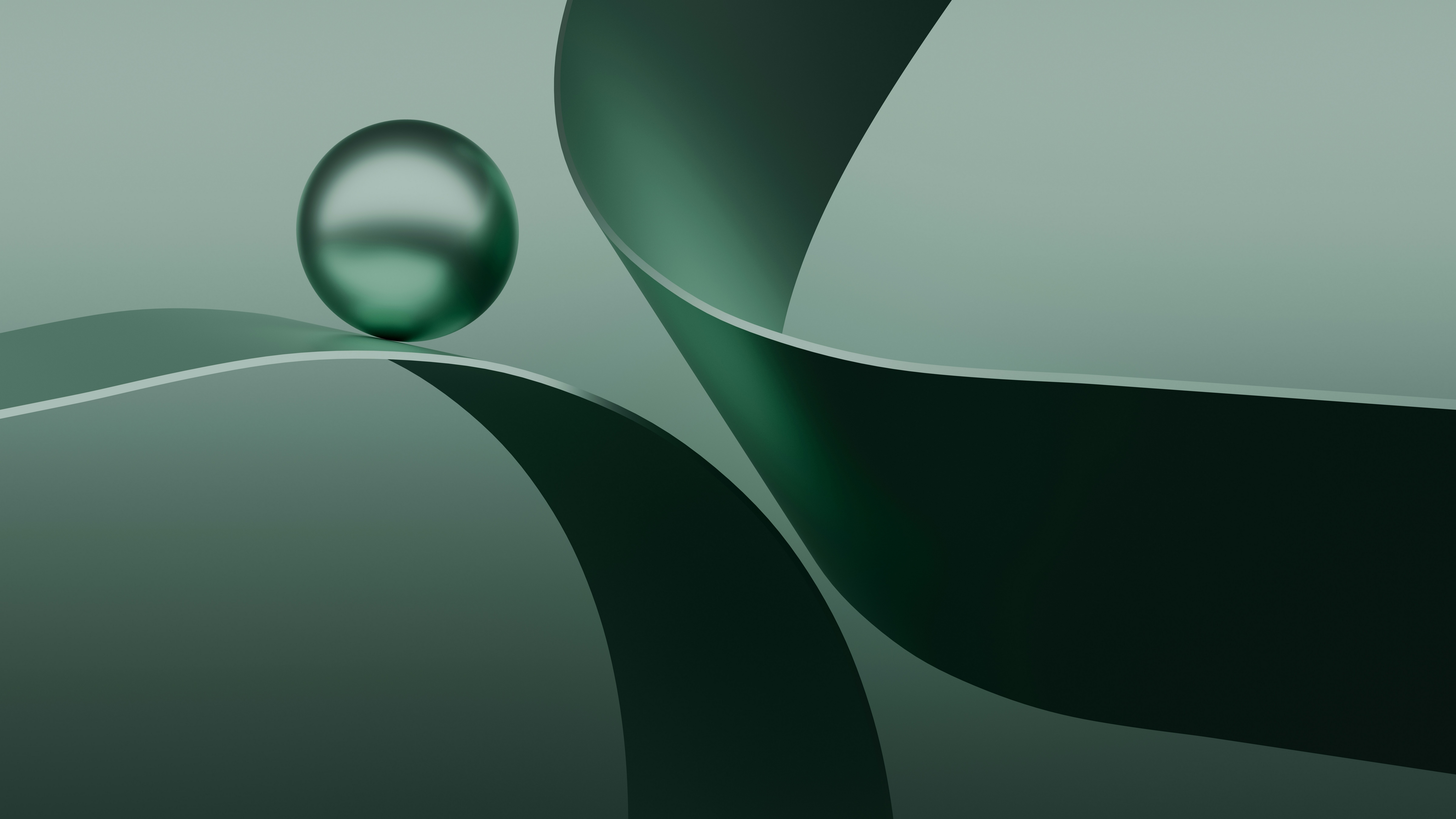 Description: A green abstract background with a drop of water on it's surface and a curved curve of grass.