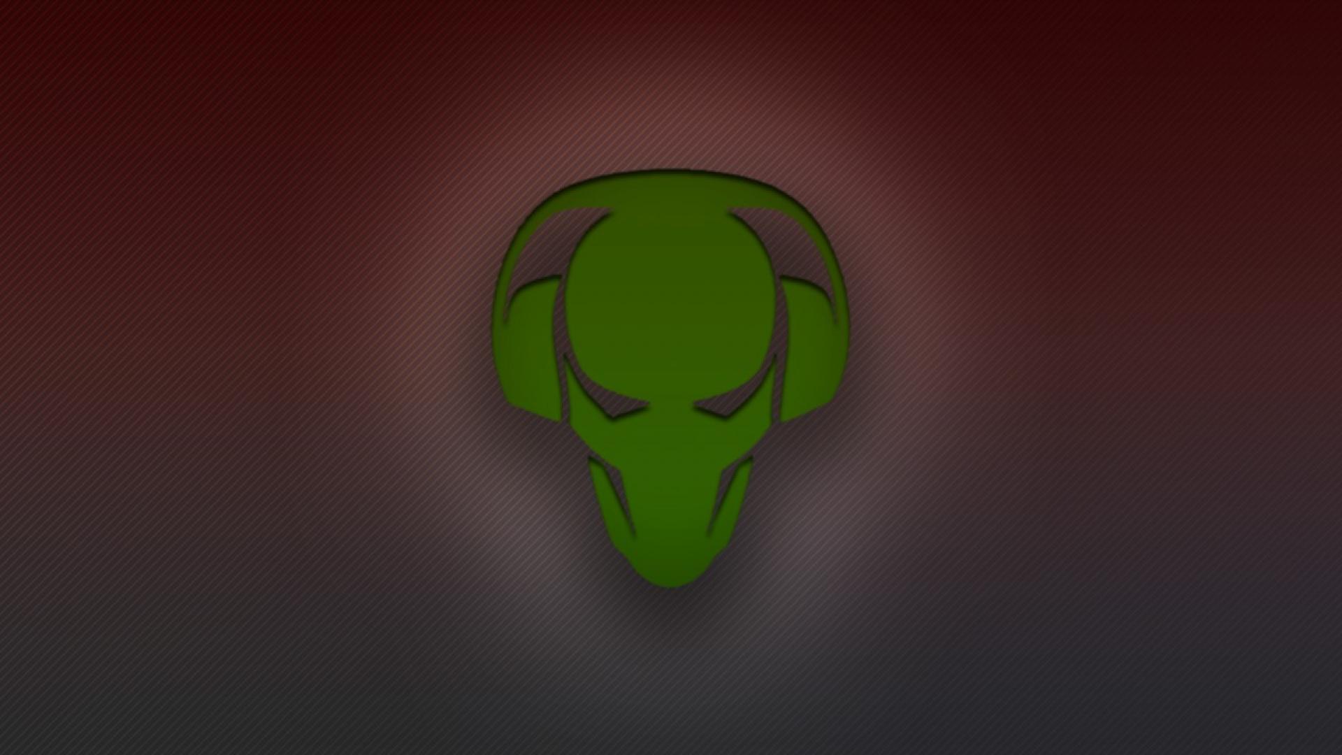 Description: A green alien head with a red background and a black background with a red background and a black background with a red background.