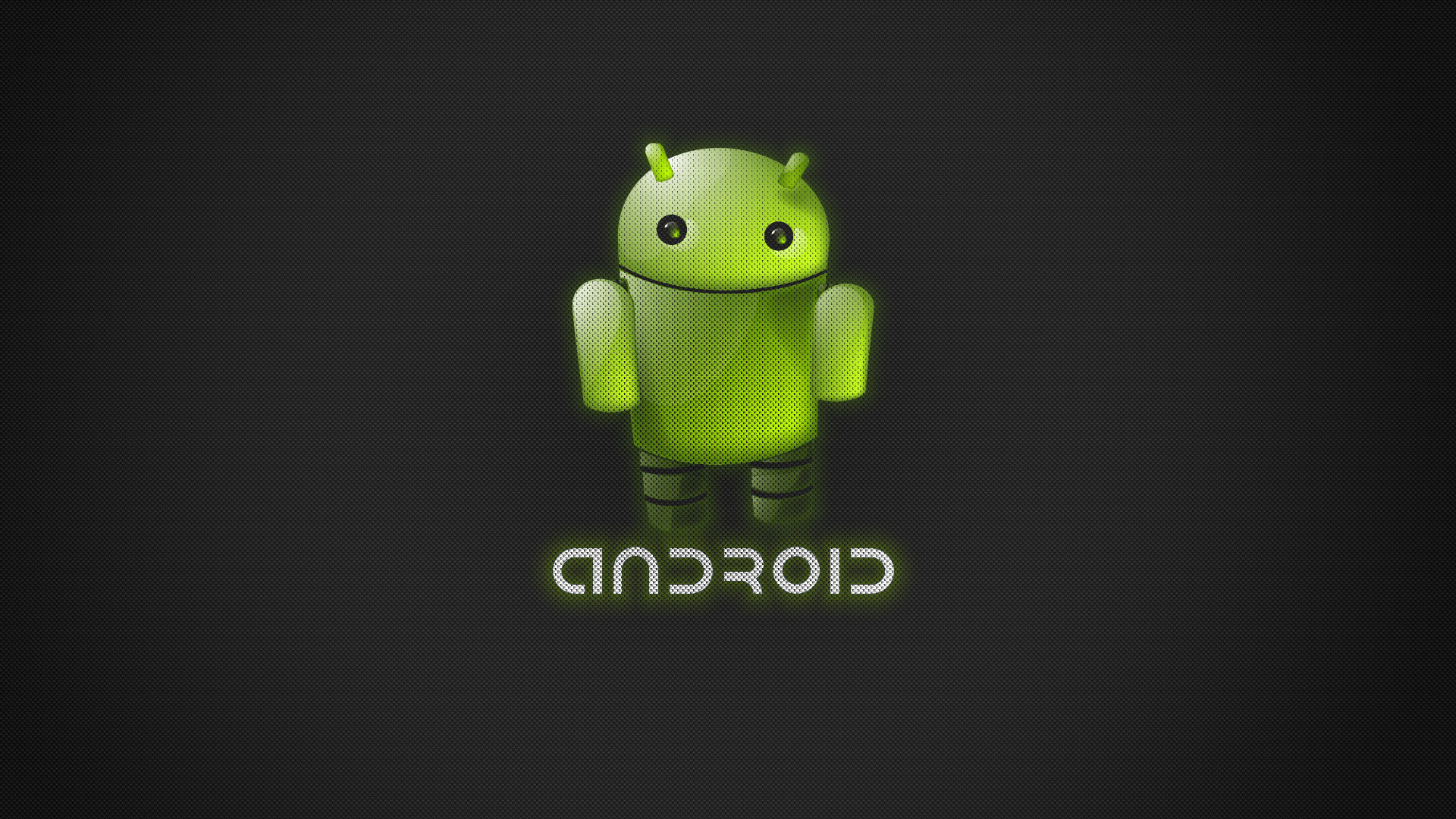 Description: A green android logo with the word android on it's side and a black background with a green glow.